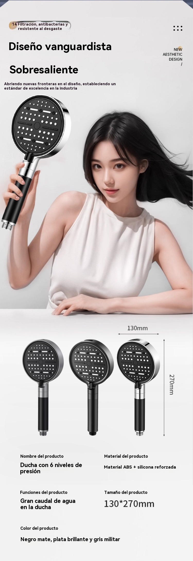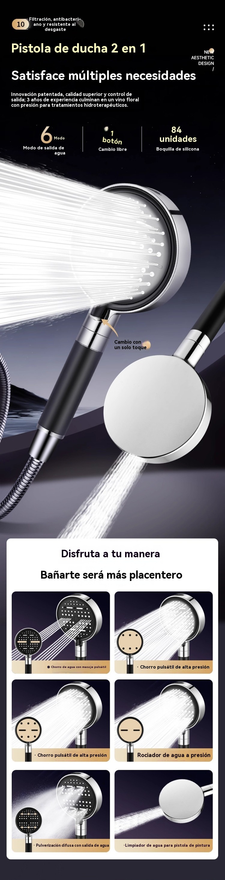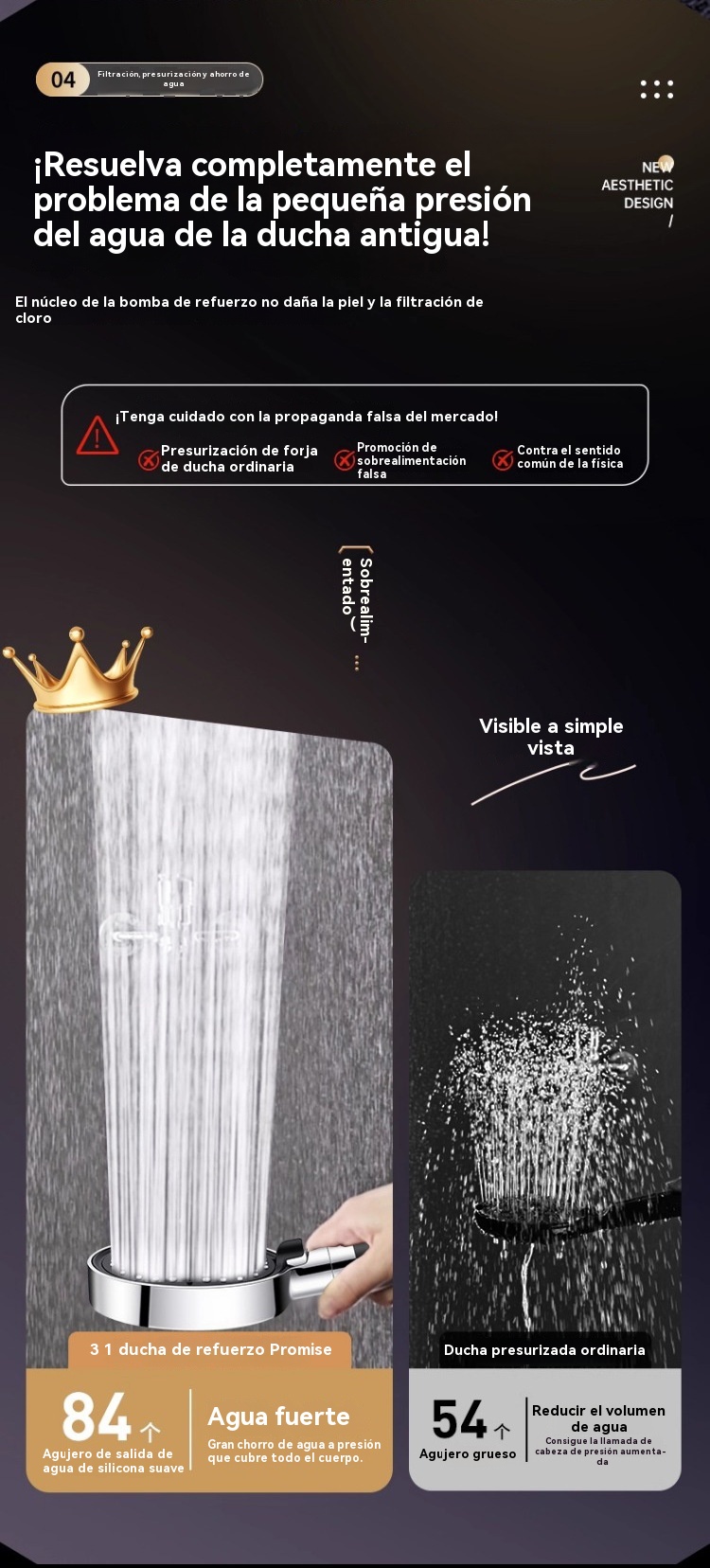 💦🚿 Cabezal de ducha de alta presión con 6 funciones. Calentador de agua para ducha de baño.