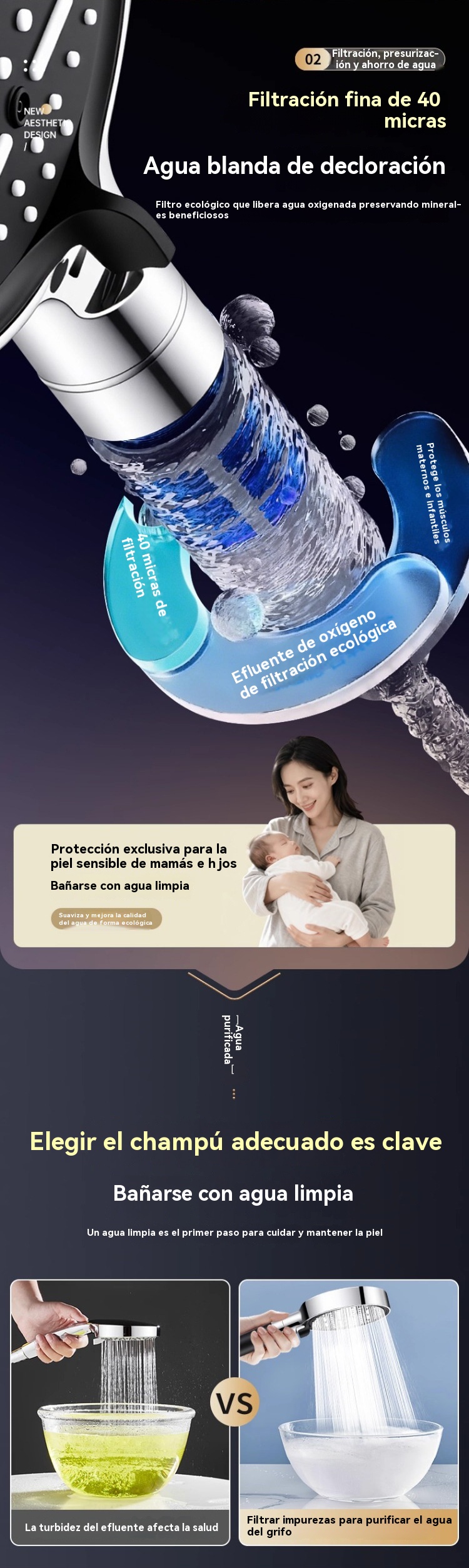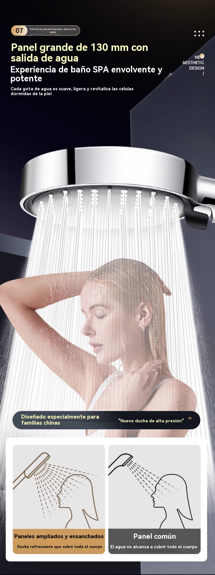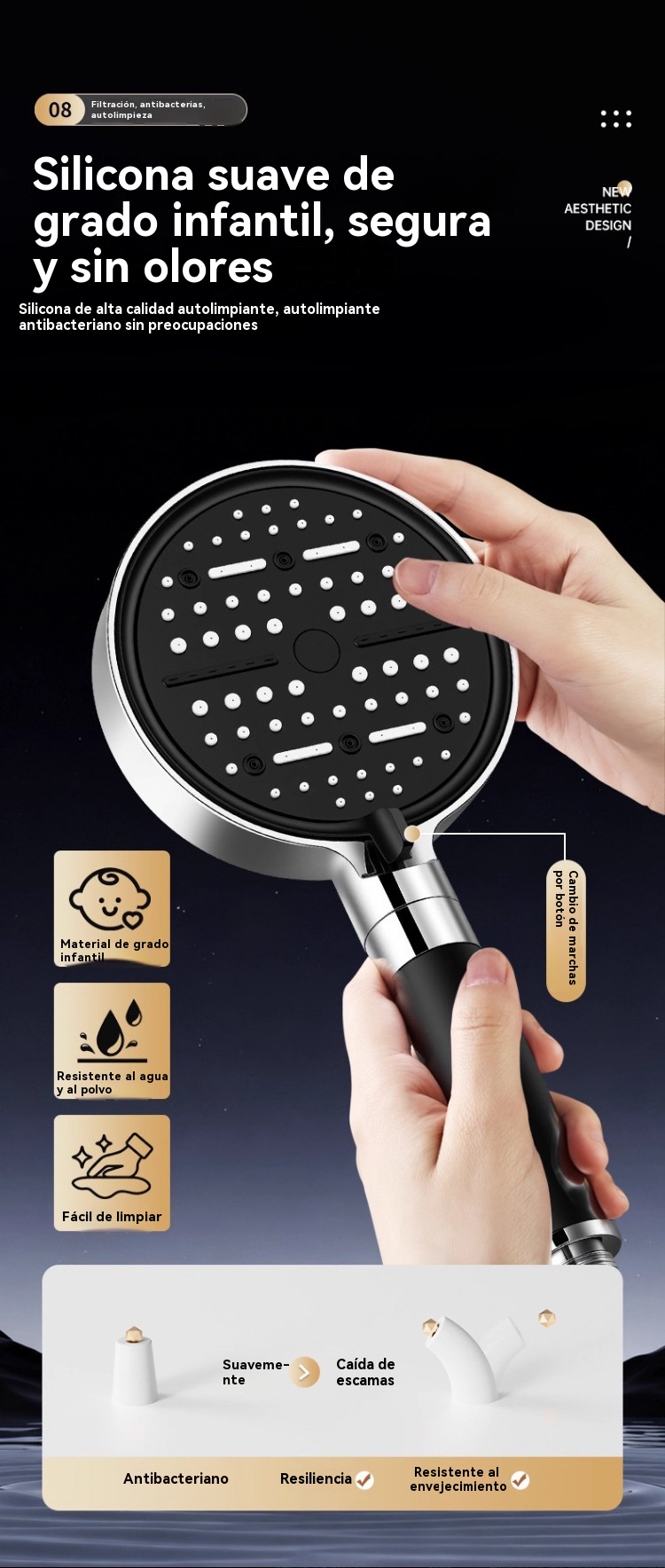 💦🚿 Cabezal de ducha de alta presión con 6 funciones. Calentador de agua para ducha de baño.