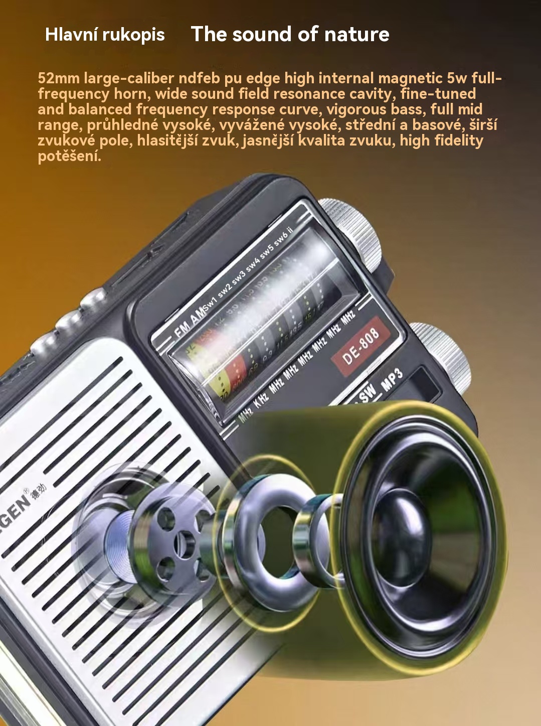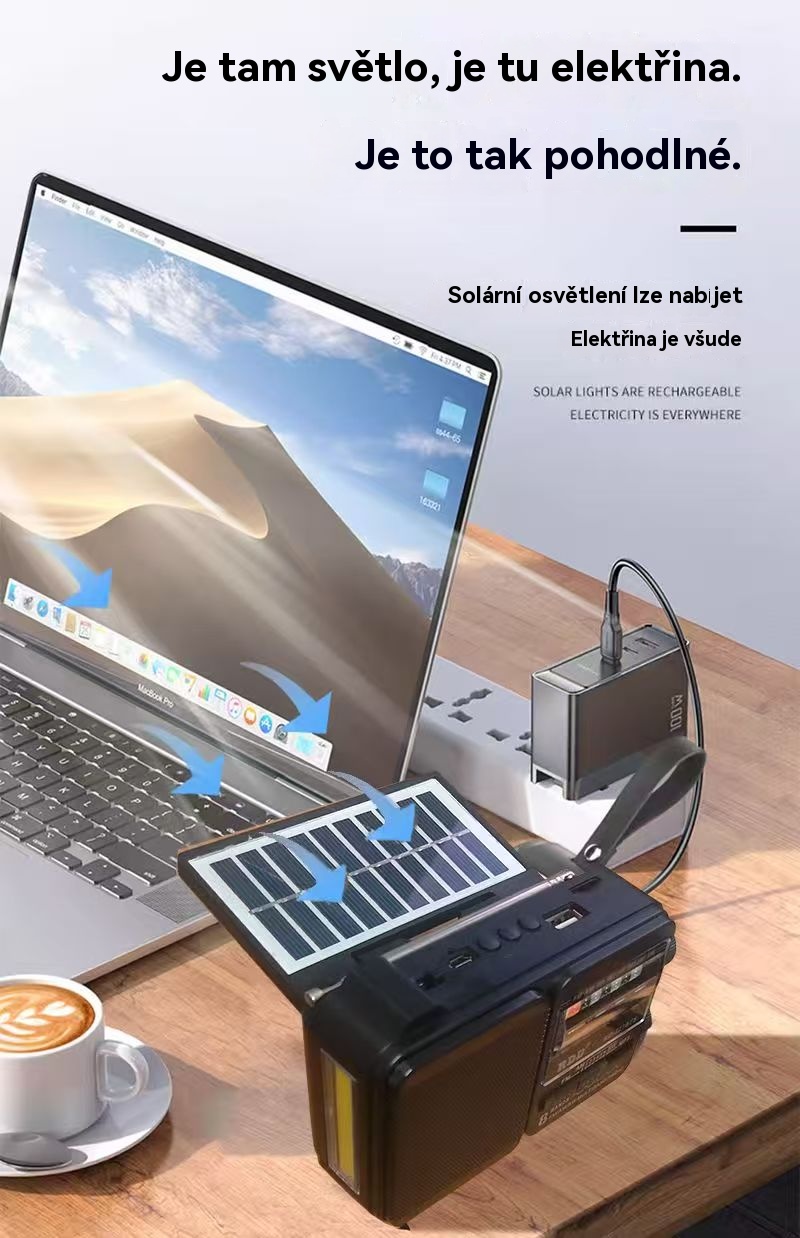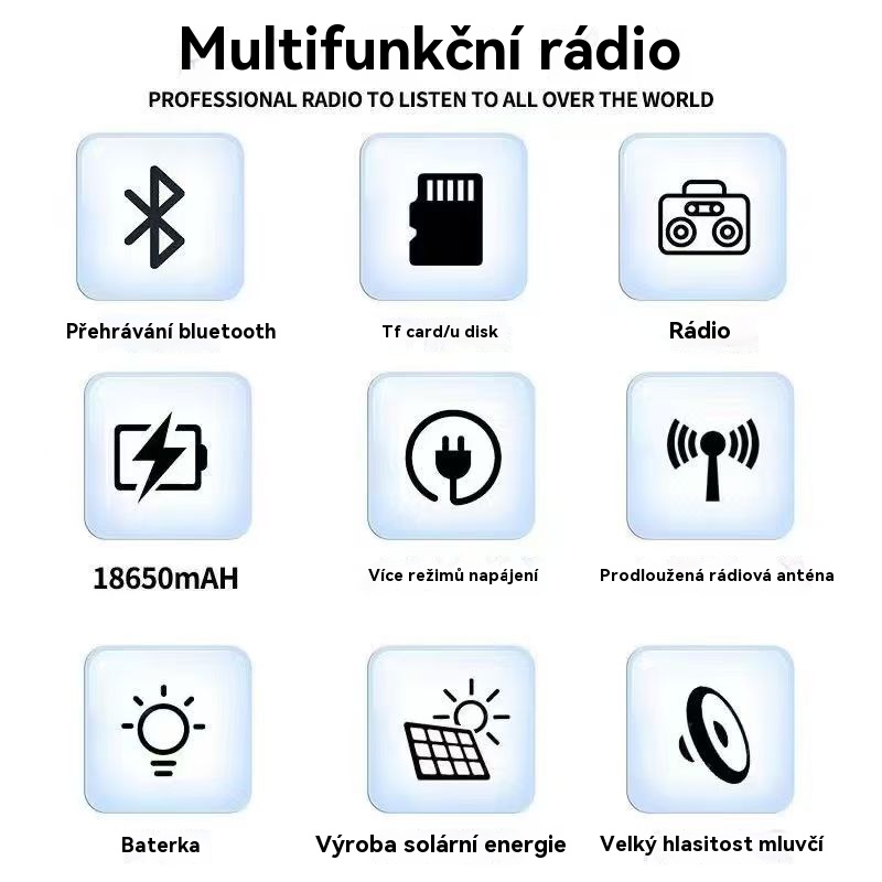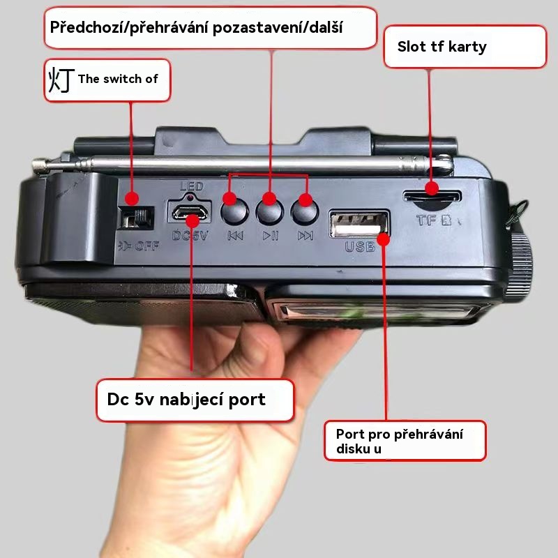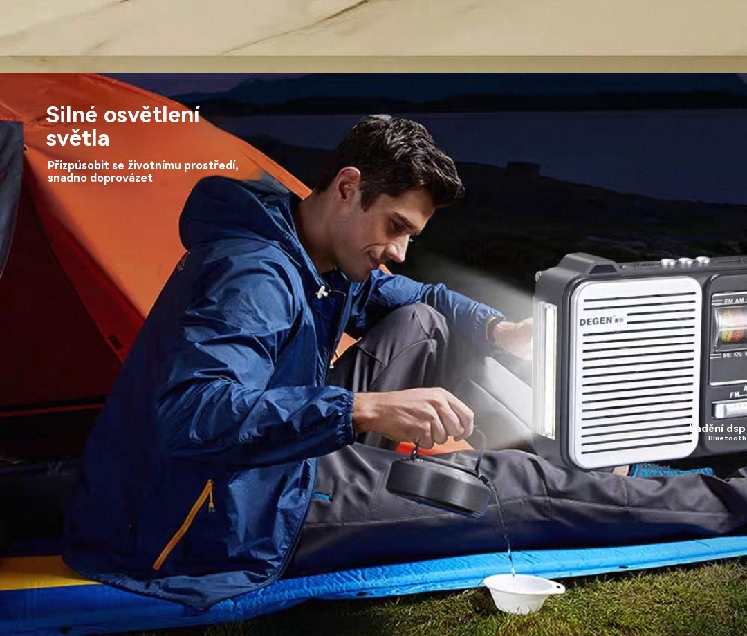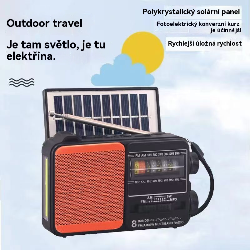 💥🏕️Multifunkčné prenosné rádio s núdzovým svietidlom, AM rádiom, pevným diskom Bluetooth a viaczónovým audiosystémom.